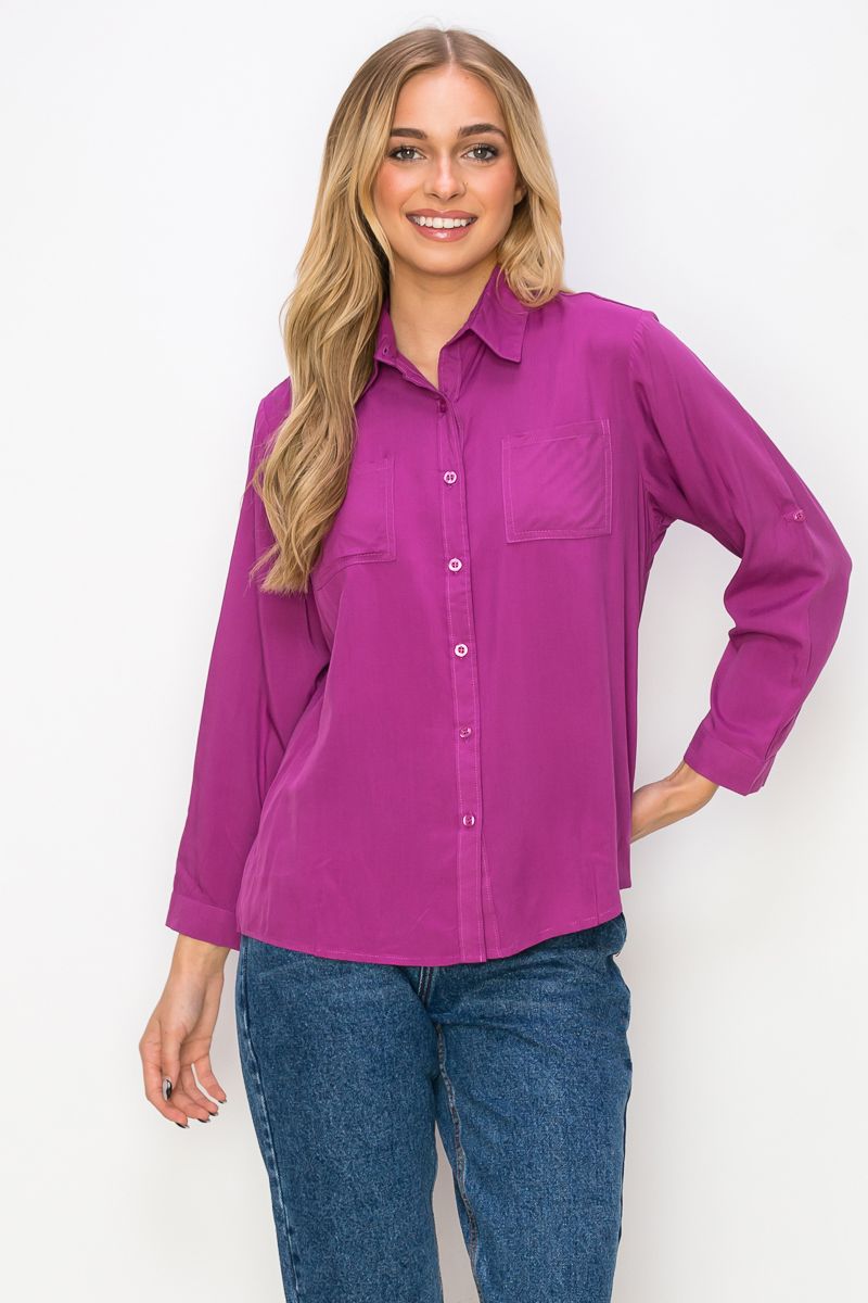 - Top Long Sleeve Button Down with Pockets