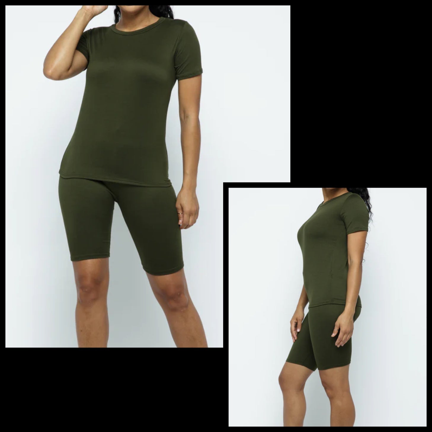 Olive Casual Biker Short Set