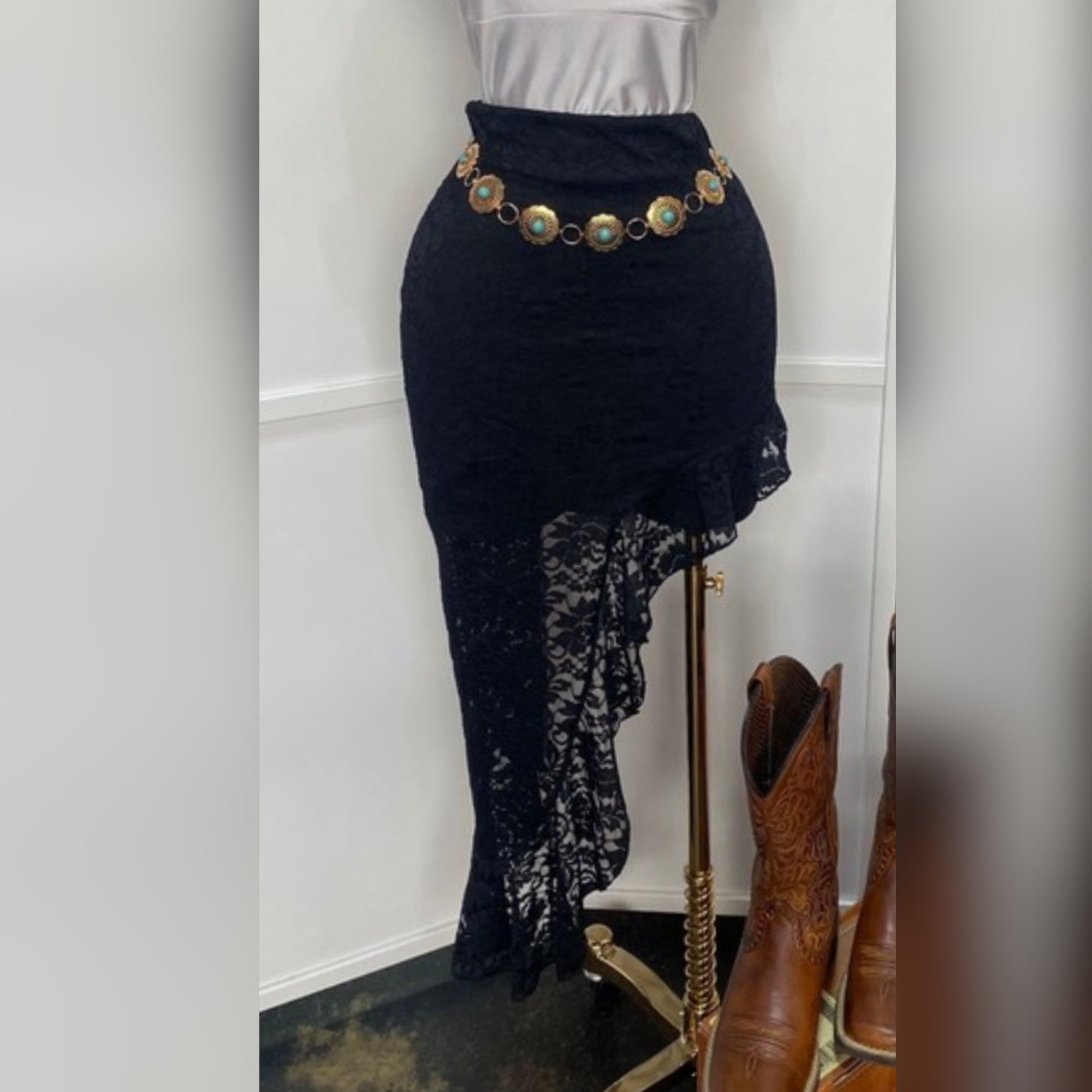 - High low lace skirt